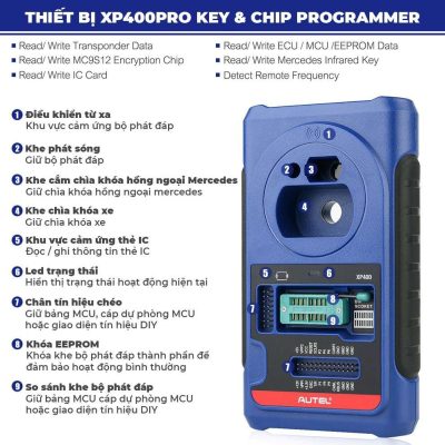 – Máy được trang bị thiết bị lập trình XP400 PRO và MaxiFlash, có thể làm việc trên tất cả các dòng chìa khóa.