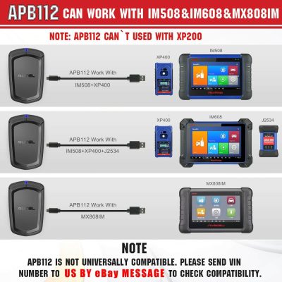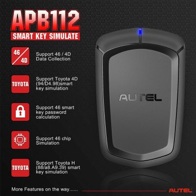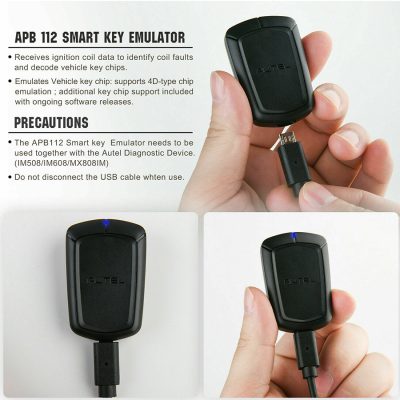 APB112 là thiết bị cài chìa khóa thông minh Smart key được sử dụng để thu thập các dữ liệu từ cụm ổ khóa, hộp ECU, xác định dữ liệu chìa khóa và giãi mã dữ liệu của chip chìa khóa trên xe. Nó cũng có thể mô phỏng chip smartkey của xe. Hiện nay, thiết bị hỗ trợ để mô phỏng 4D các loại chip chìa khóa. Sản phẩm là thiết bị giả lập chìa khóa Smart key dành cho dòng xe Toyota/Lexus. APB112 được sử dụng kèm theo thiết bị cài chìa IM508 và IM608.